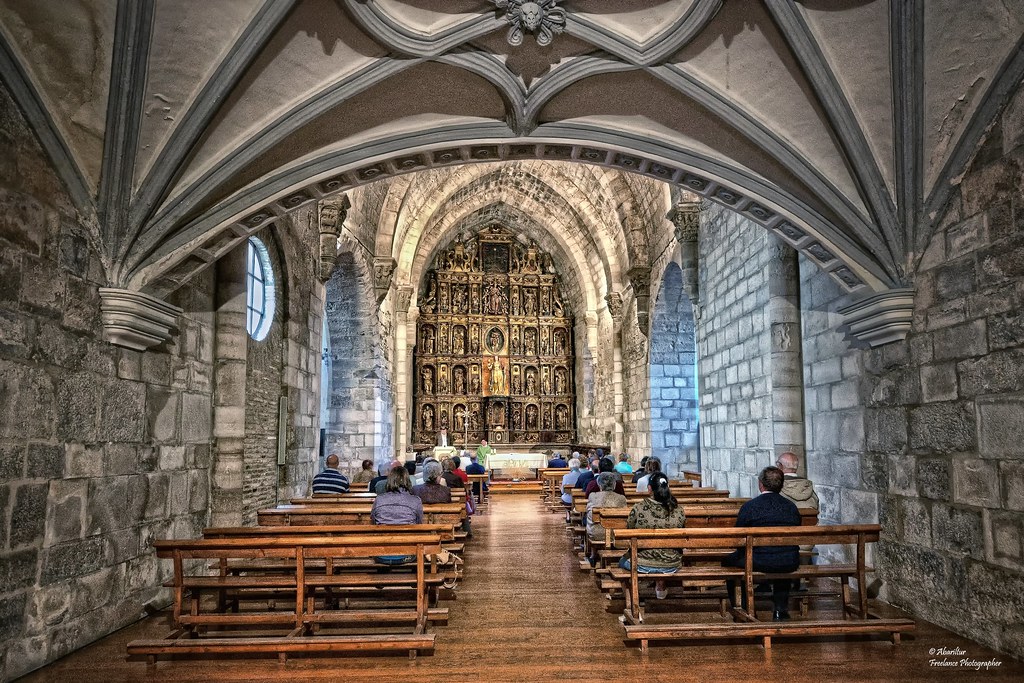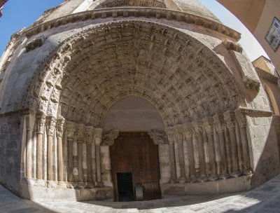 Destaca su portada escultórica del siglo XII y su interior con bóveda de cañón apuntado y reformas renacentistas posteriores.